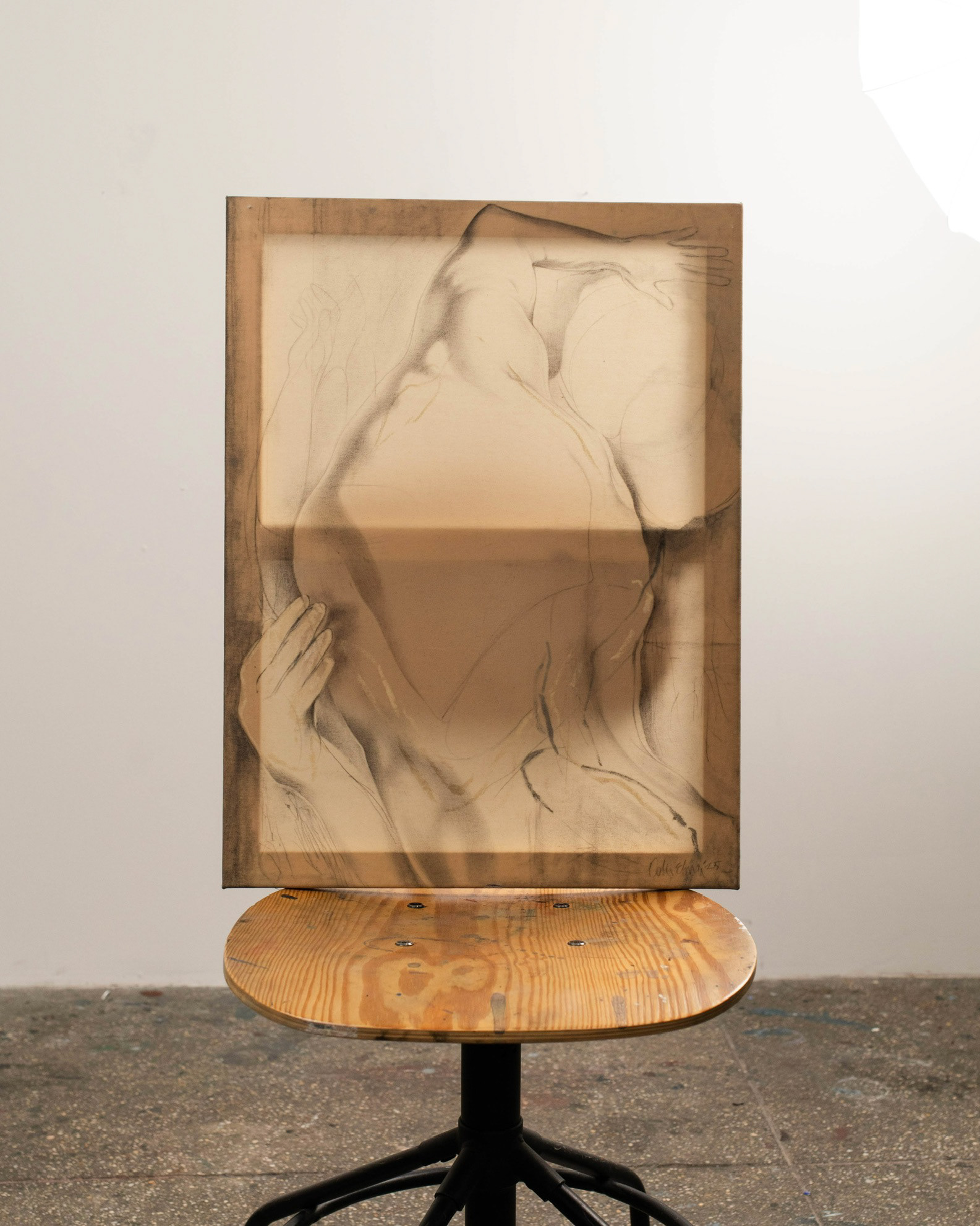 Graphite and pastel on waxed canvas