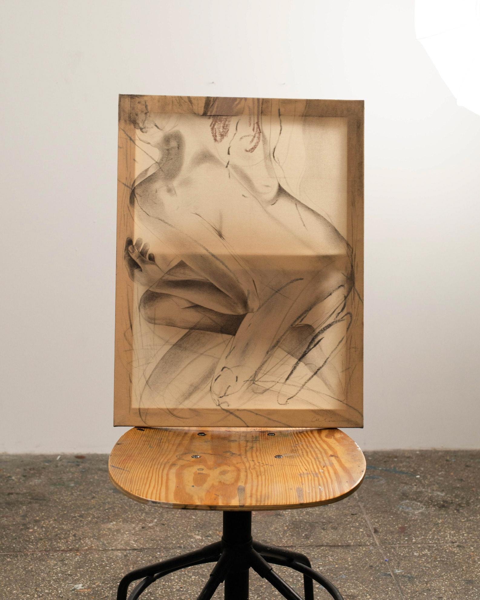 Graphite and pastel on waxed canvas